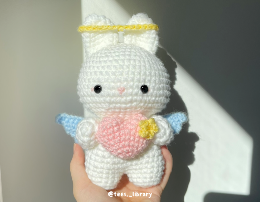 make your own adorable cupid bunny with this pattern! this is an advanced-beginner to intermediate level pattern that features instructions on how to crochet the bunny and all its cupid accessories.