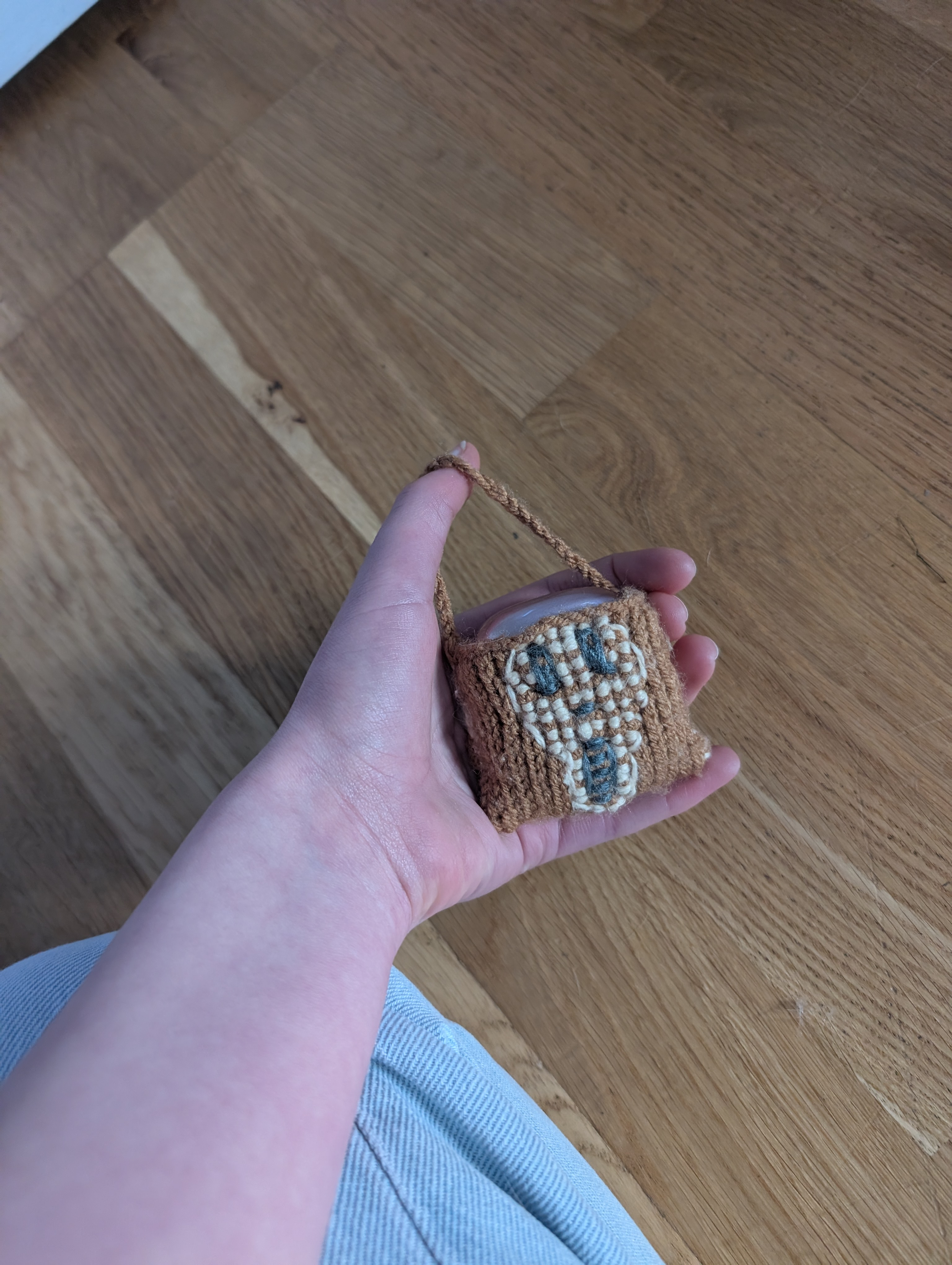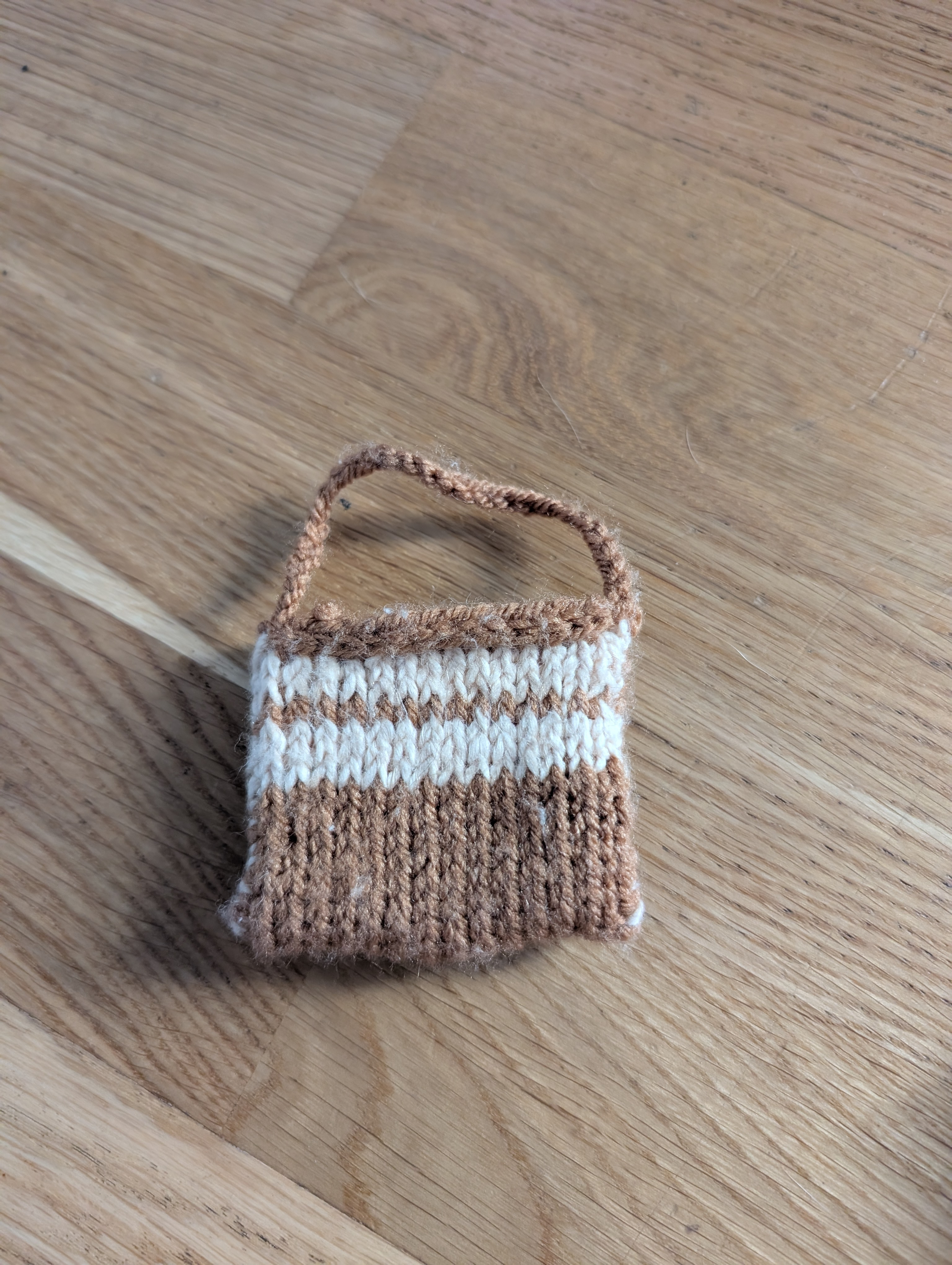This is a pattern to make a miniature bag that can carry airpods , keys or anything else that is rather small and is easy to personalised :)