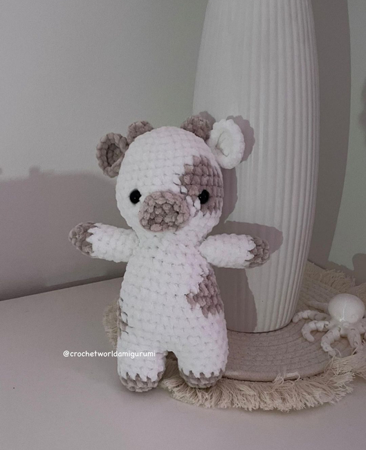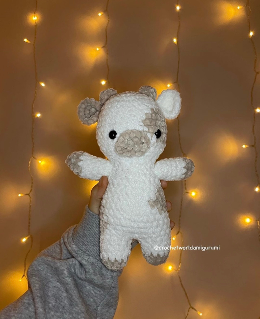 I created this pattern with a Little Bit of Inspiration of other Cow patterns! I hope you like the pattern . For this pattern I used Himalaya yarn in color brown and white! You can do them in many different colors! Enjoy!!