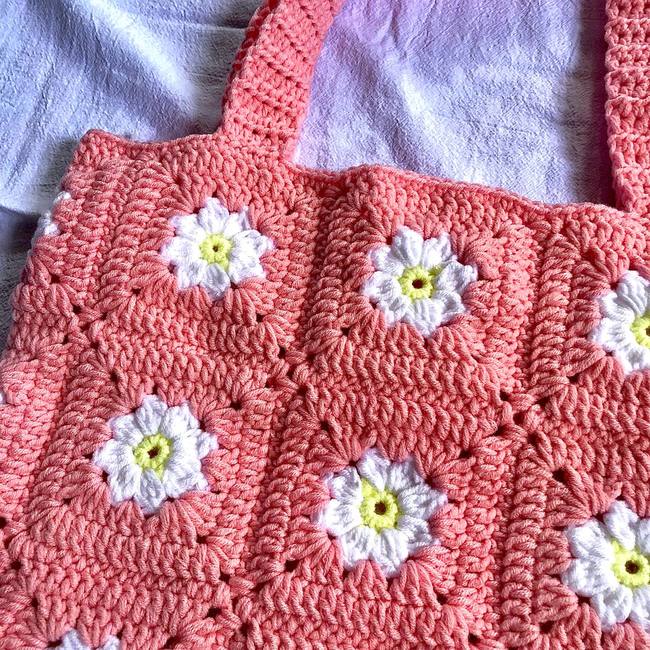 The Cute Daisy Totebag pattern makes a Accessories. It is a Beginner Crochet pattern.