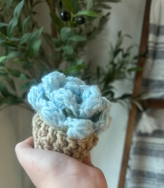 This is a pattern for a very cute flower coaster that you can make your own little pot if you want to, so it can be a bouquet then it will turn into a flower coaster.
