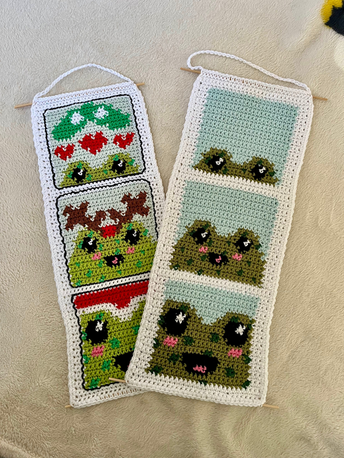 Cute Frog Christmas Photo Booth Crochet Tapestry Pattern