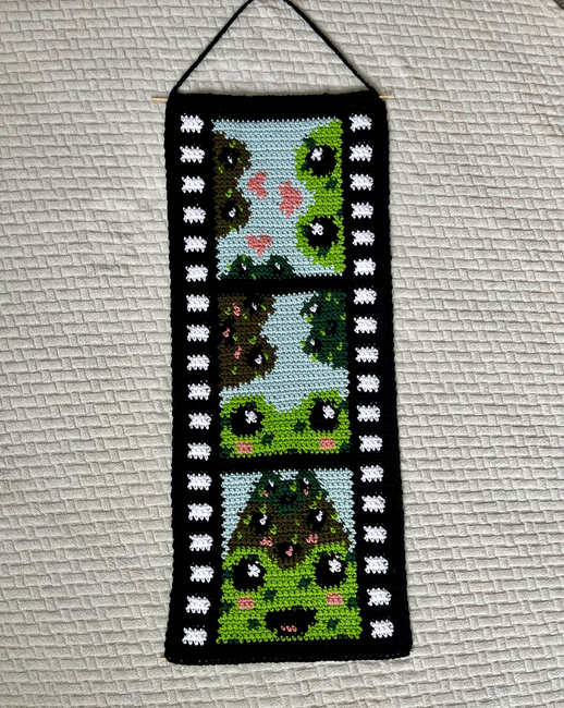 This adorably froggy film reel would be perfect for giving your home a splash of froggy cuteness! I love this pattern as I have two siblings, so imagine this would be us in a froggy universe! :)