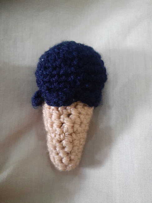 This pattern is absolutely for begginers it is a cute ice cream using light brown or skin yarn with any topping cream colour you like it can bea used as a keychain.