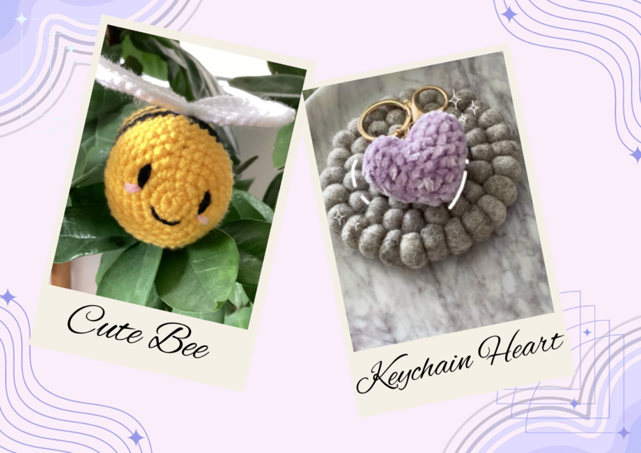 Yarn & Charm designed the Cute Keychain & Bee pattern. Find more of their patterns on their Ribblr shop page.