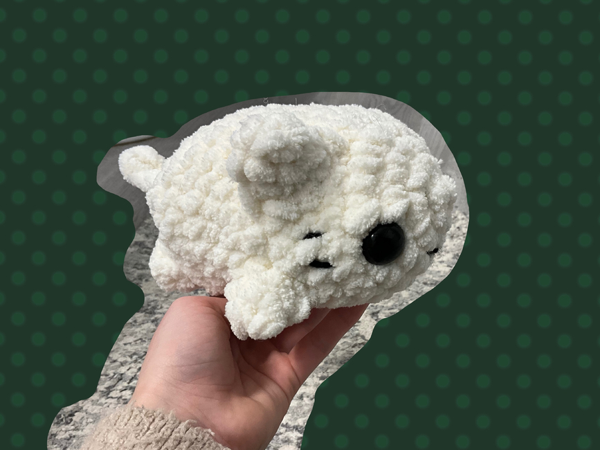 Here's a little kitty I made! I used bernat blanket white color and an 8 mm hook. It's about 6 inches long (not including tail) and is perfect for a quick and easy gift!