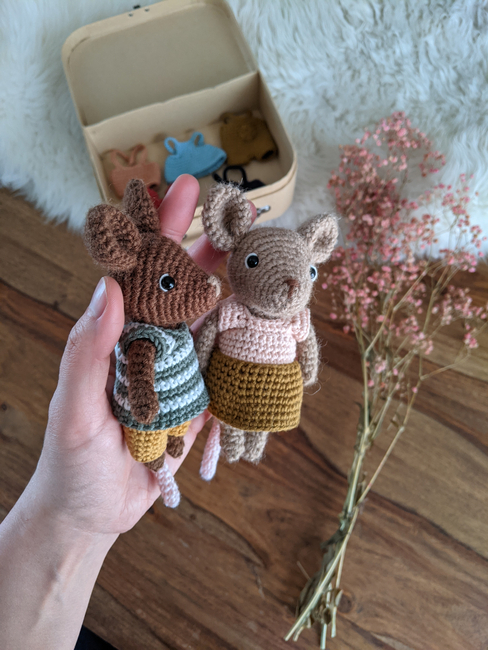 In this crochet amigurumi bundle, you'll find instructions to crochet the mouse + its wardrobe essentials : a t-shirt, shorts, overalls, a skirt, a dress + various customization options.