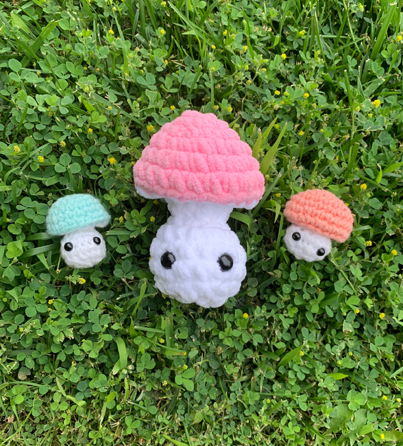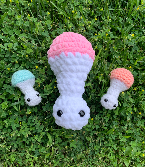 This is a pattern for a crochet pop-it mushroom! It can be made with both chenille and regular yarn. Use it as a fidget or have a little friend to get you through your day. Enjoy this pattern and don't forget to write me a review!