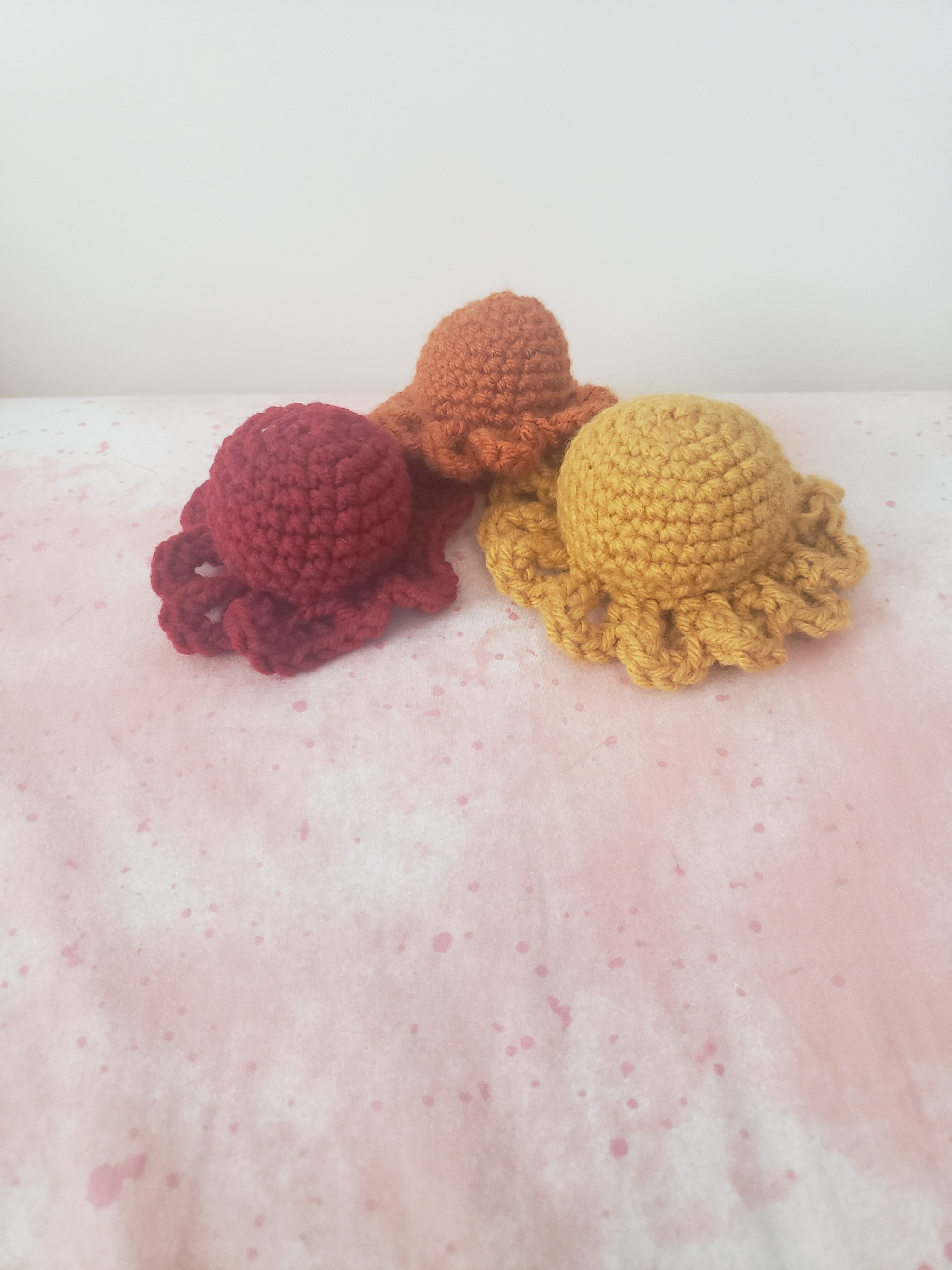 This is my octopus pattern that is super easy no sew and can be made in under 1 hour you can use your creativity to decide the color yarn type i recommend acrilic and you can put eyes I didn't so have fun