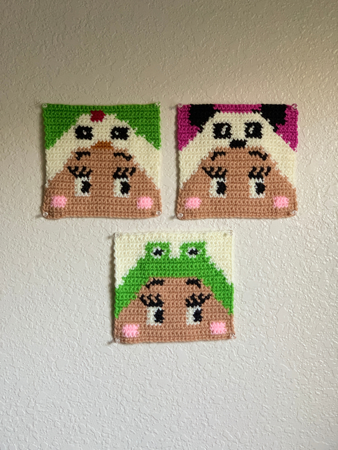 this pattern is graph only, using single crochet. the pattern is a bundle of three animal graphs for series no.1.
