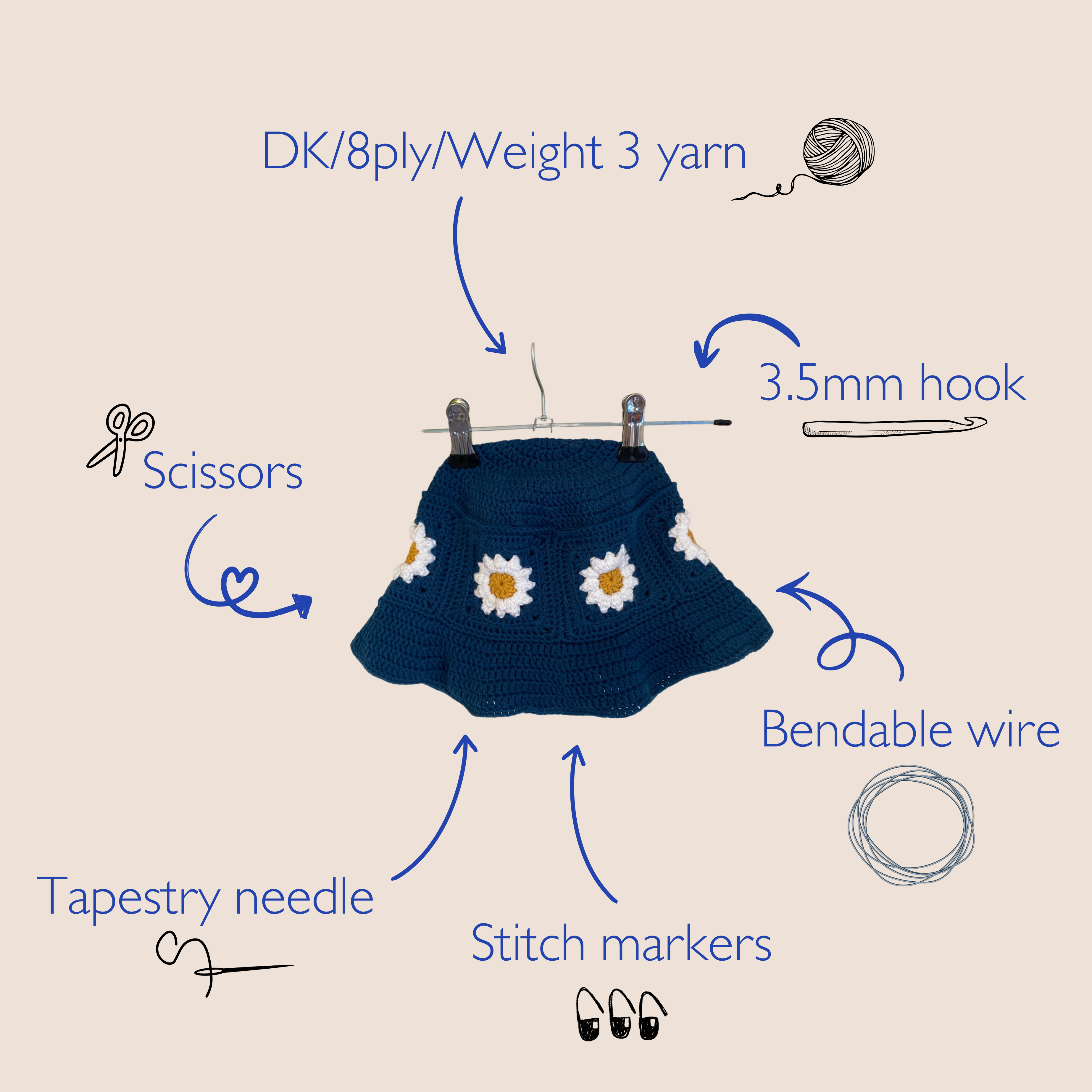 This daisy bucket hat is the perfect summer accessory lightweight, fun, and full of personality Feel free to get creative with your colour choices, from bright and playful to soft and neutral tones