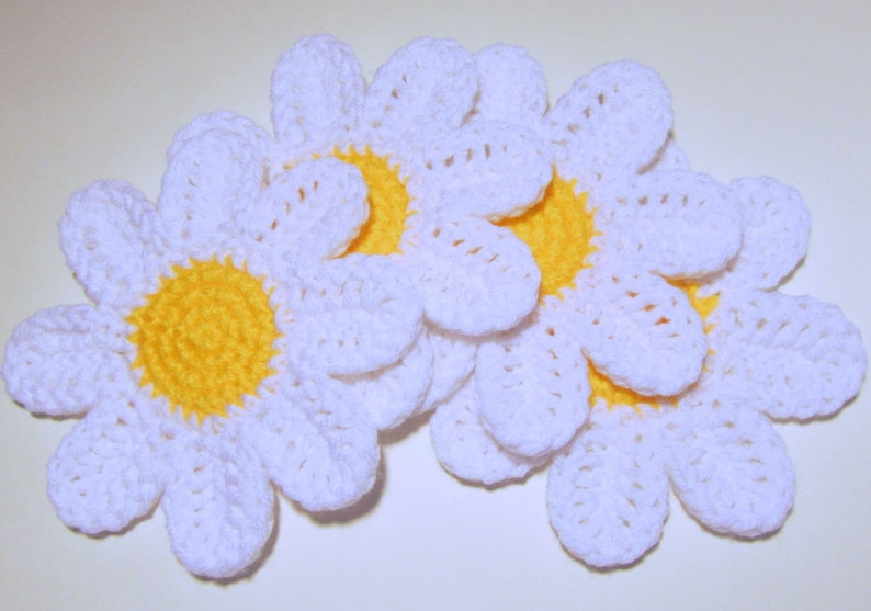 This pattern is for this adorable set of daisy coasters! This is a very quick project - works up in about half an hour or so. This pattern is in english, and is suitable for beginners.