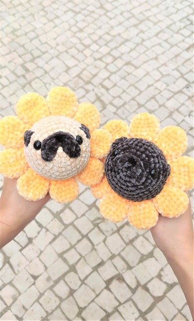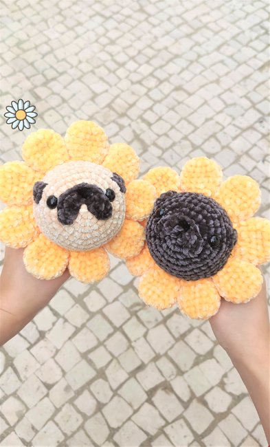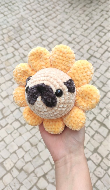 Daisy Pug Plushie crochet pattern! Step-by-step easy pattern with multiple step photos.