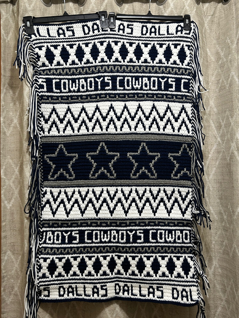 This bundle is a collection of mosaic crochet strips used to create a Dallas Cowboy themed blanket. The bundle include patterns with charts and row-by-row instructions for each. Let your creativity run free with the order of the strips and the colors you choose.