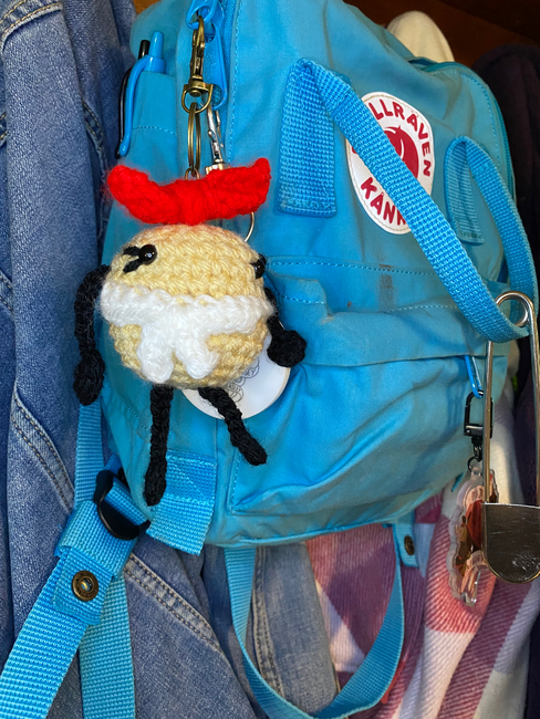 This Dancing Cream Puff is a fan art depiction from one of my favorite anime's Mashel and the Magic Muscles. This is for a small keychain size plushie mad in worsted weight yarn.