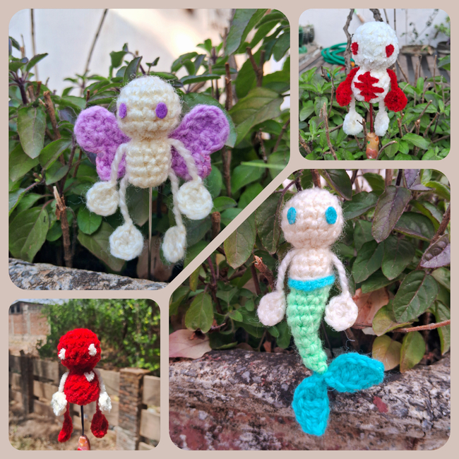 This bundle consists of my patterns for the dangly folks. You'll get; Dew the Dangley Dude, Flutter the Fairy, & Moni the Mermaid. Hope you'll like them