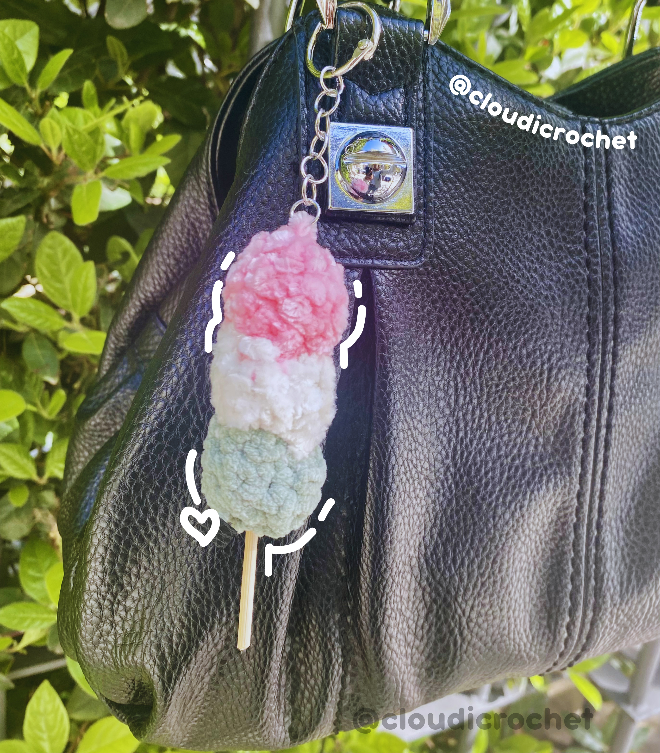 Cloudi Crochet designed the Dango keychain pattern. Find more of their patterns on their Ribblr shop page.