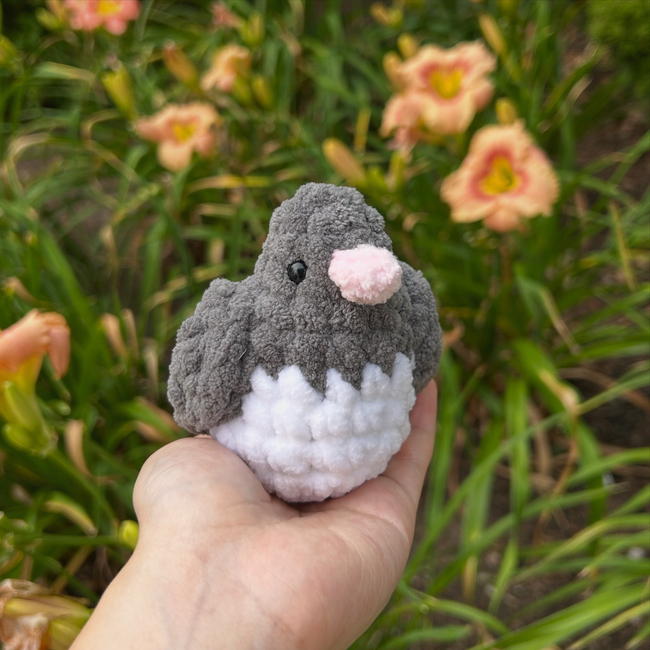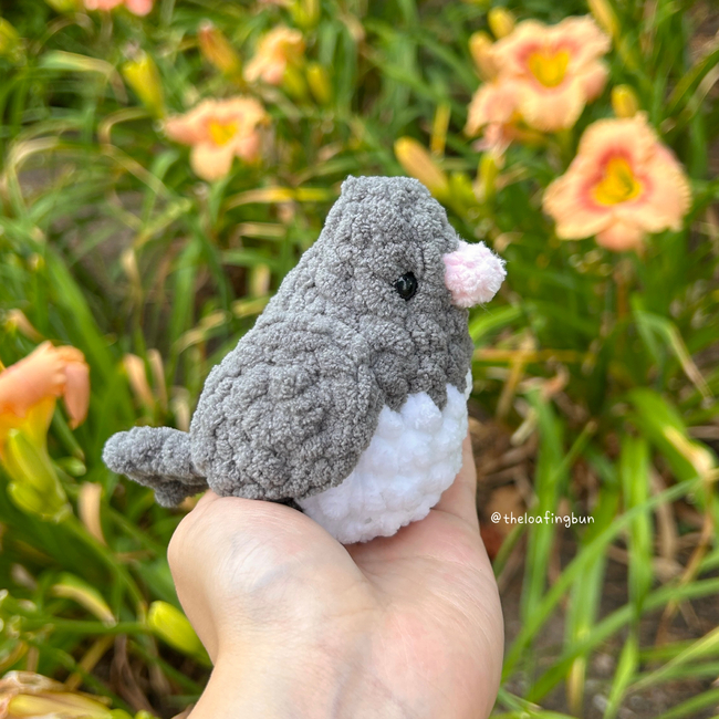 Crochet your own dark eyed juncos! A popular wintertime bird, they are quite common at backyard feeders! They are known for their cute, round shape. This pattern is intermediate level (you will need to know how to colour change).