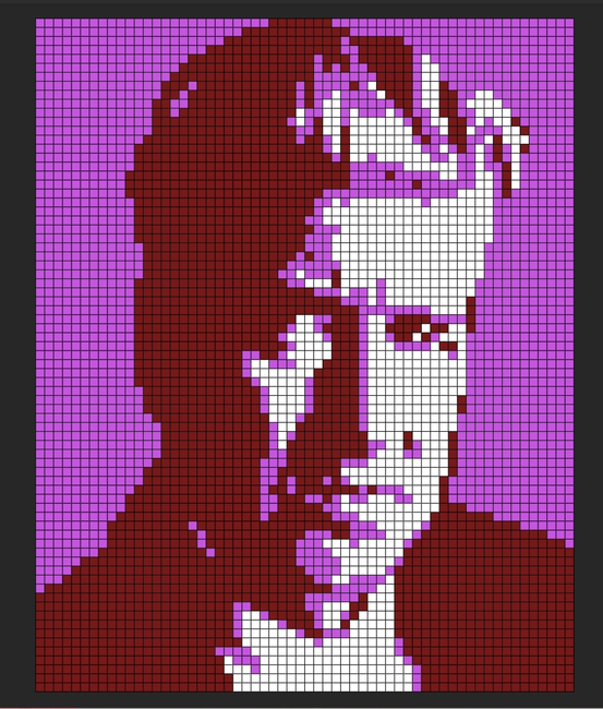 This is a free tapestry chart for whatever medium you like to make your tapestries in! Whether it's crochet, perler beads or criss stitch, you can use this graph to create a lovely homage to the talented and incomparable David Lynch. The grid is 60x75.