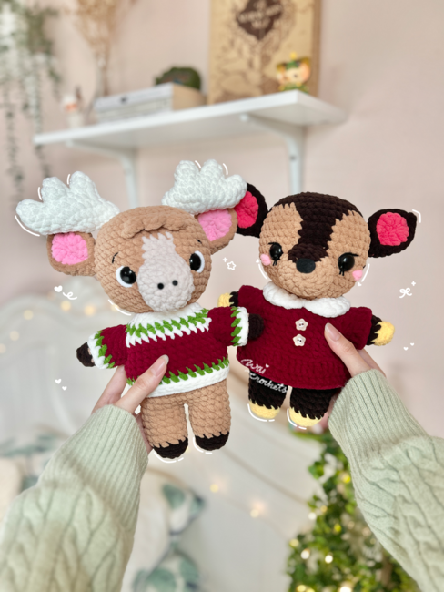 This bundle includes both Erik the Deer and Fauna the Doe patterns. The patterns are categorised as intermediate to advanced level of difficulty, as they involve colour changing, sewing, and some unconventional techniques. The pattern is written in English and in US terminology. Step by step instructions are included, along with pictures, to guide you through making your own deer plushies!