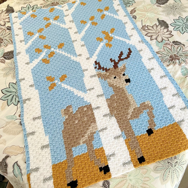 Grab your crochet hooks and take a walk in the woods with this Deer in the Woods C2C crochet pattern. This woodland scene blanket features autumn-colored birch trees with an adorable deer wandering through the woods. After you finish crocheting this beautiful graphgan, it makes the perfect finishing touch for a woodland-themed nursery or as a sweet baby shower gift. But its not just for the babies in your life. This modern afghan makes a stunning piece for any living space. Make one for yourself or a friend.