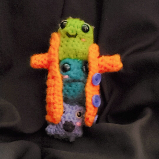 Silly sausage stitches designed the Definitely not 3 frogs pattern. Find more of their patterns on their Ribblr shop page.