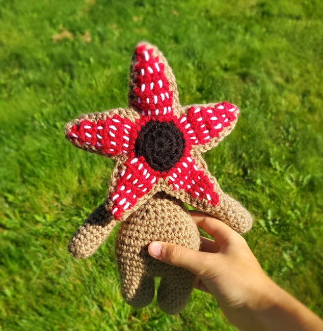 This pattern uses anywhere between a 3 and a 5 mm crochet hook. It will work with a bigger size hook and wool, but you will have a very, very large plushie and the head won't stand up properly. I'll be remaking this pattern to accommodate giant plushie wool so stay tuned!