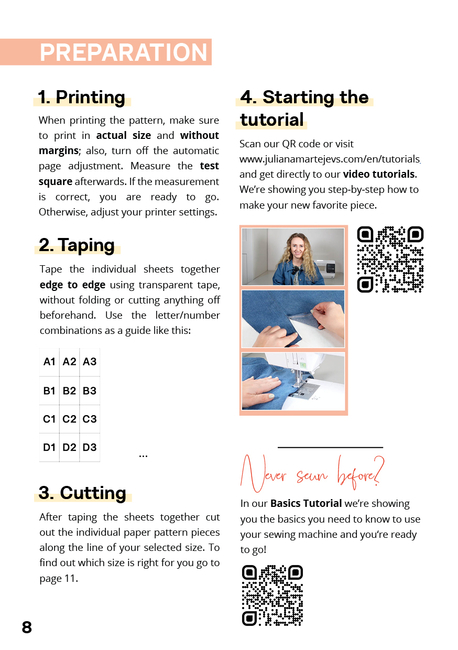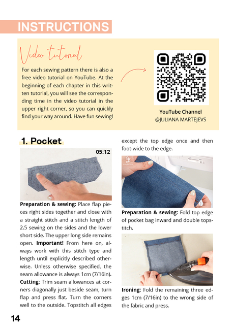 Use the video sewing instructions to the pattern and sew along step by step with Juliana. If you've never sewn before, watch the sewing machine basics video tutorial first. There you will learn about the components of a sewing machine and how to sew your first seam.