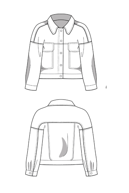 With the denim jacket sewing pattern The Jean Jacket, you can sew the perfect jacket with long sleeves and a boxy cut in one of two lengths.