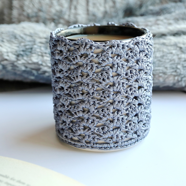 The Denim Lace Mug Cozy Crochet Pattern pattern makes a Home Decor. It is a Intermediate Crochet pattern.