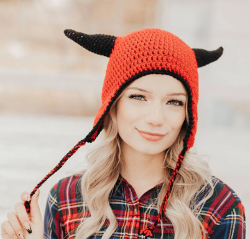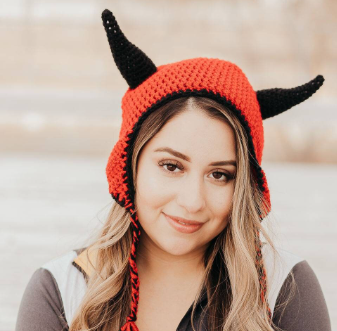 Crochet a devil earflap hat with horns for Halloween, your next costume party, or just because!