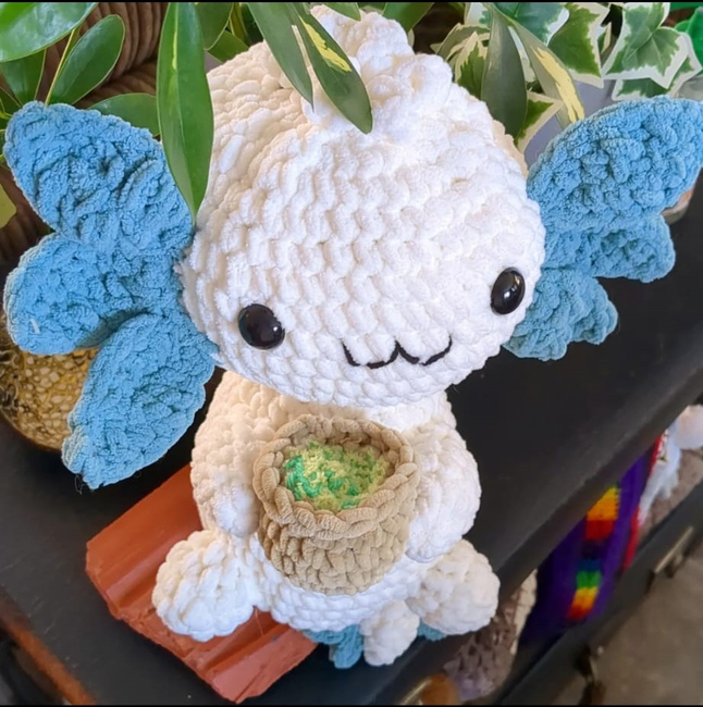 The Dim Sum Snaxolotl pattern makes a Amigurumi. It is a Intermediate Crochet pattern.