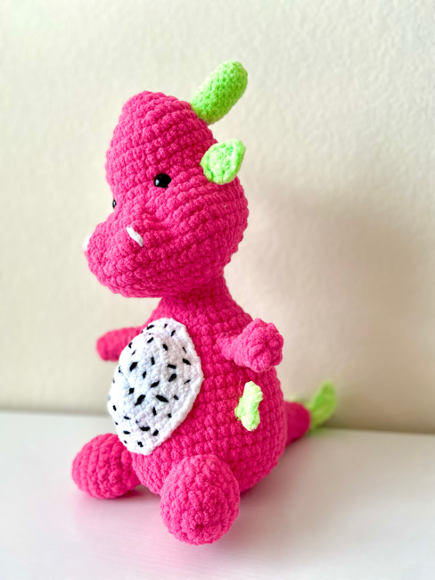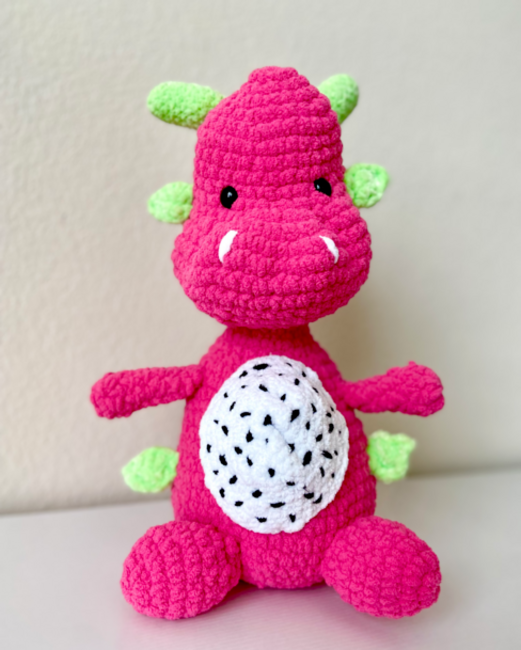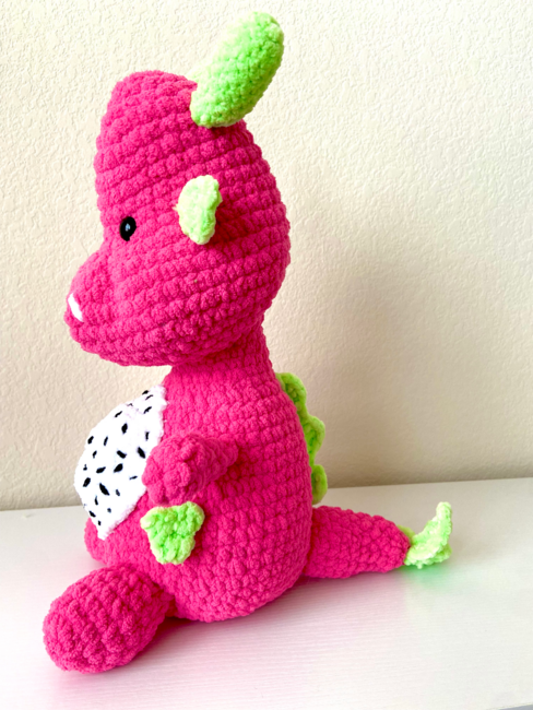 Rawr! Here come's Dino the BFDF (Big Friendly Dragon Fruit). This crochet pattern is perfect for intermediate/advanced crocheters as it does involve some sewing for the details. This snuggly creation is a perfect mixture of fierce and fruity and will be a rawr-derful addition to your collection! I love how this turned out and I can't wait to see what you create