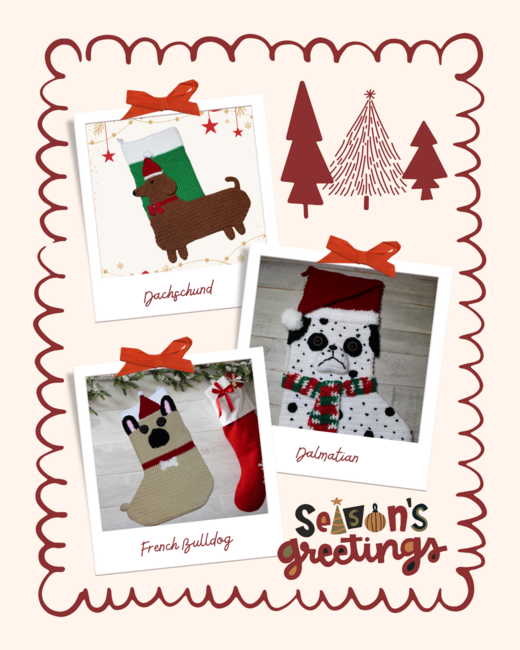 Celebrate the holidays with a whole pack of festive fun! This crochet pattern bundle includes 12 dog-themed Christmas stocking patterns, each inspired by your favorite furry friends. From playful pups to loyal companions, every design captures the heart and personality of beloved dog breedsperfect for decorating your mantle or gifting to fellow dog lovers.