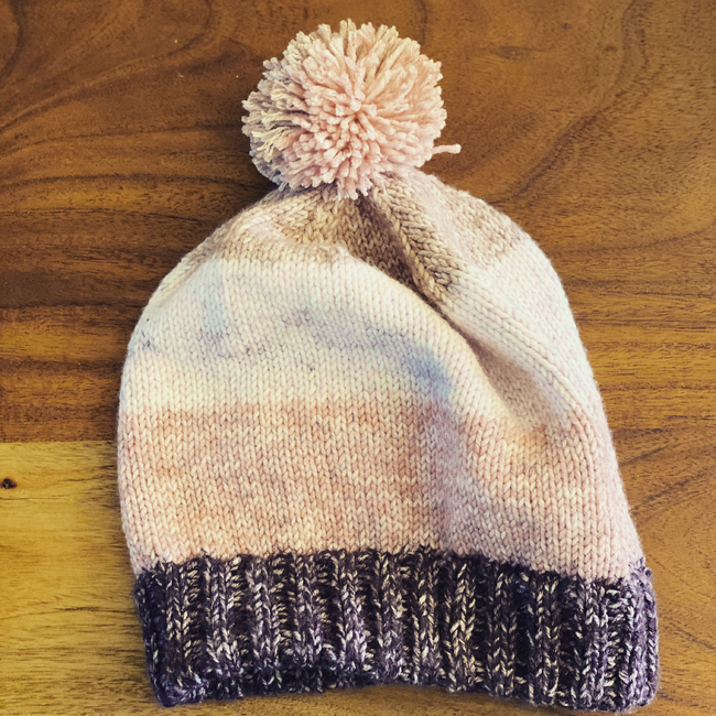 Scissors, tapestry needle and tight fitting stitch marker recommended. Pom-Pom optional