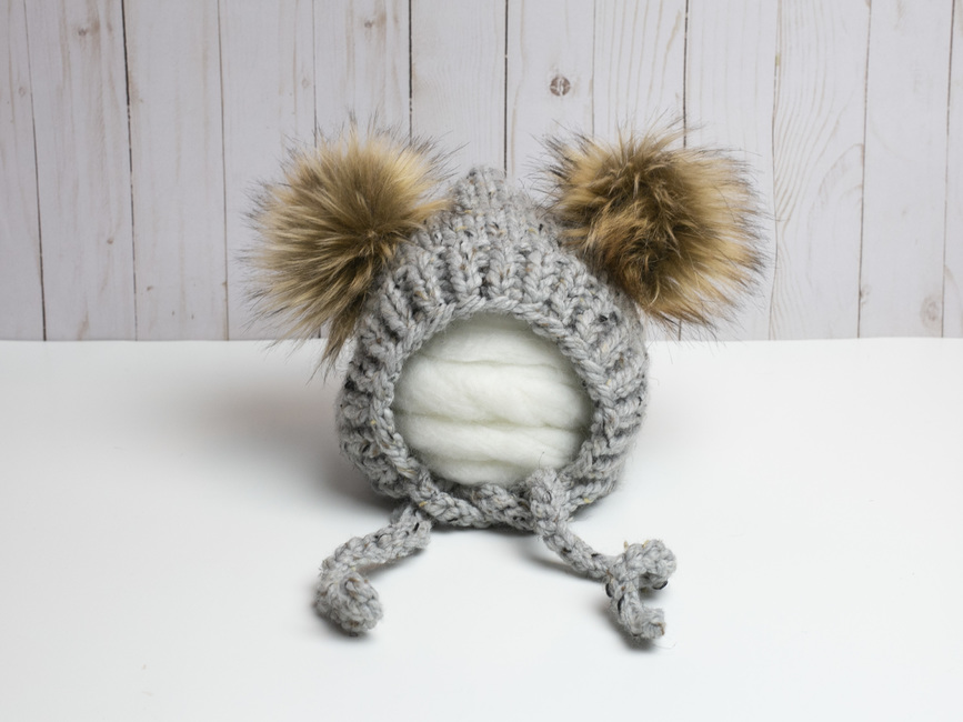 Double Pompom Bear Ears Pixie Bonnet Hat Baby Children