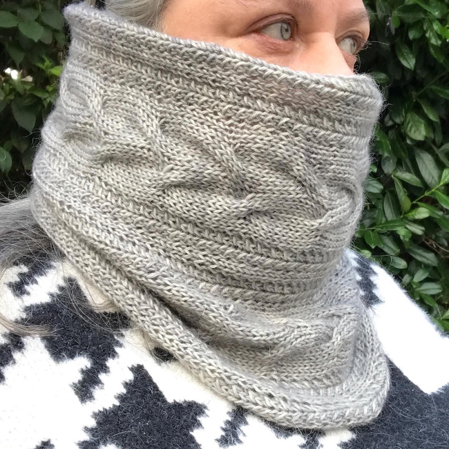 Knitted flat, this DK cowl is a great value one skein wonder and whilst the cables lend themselves to any DK yarn, they look amazing in yarns with a