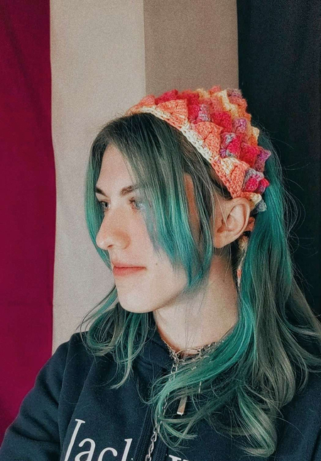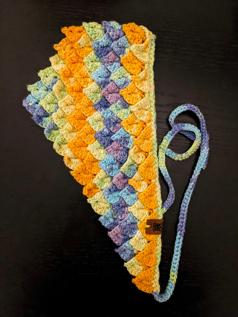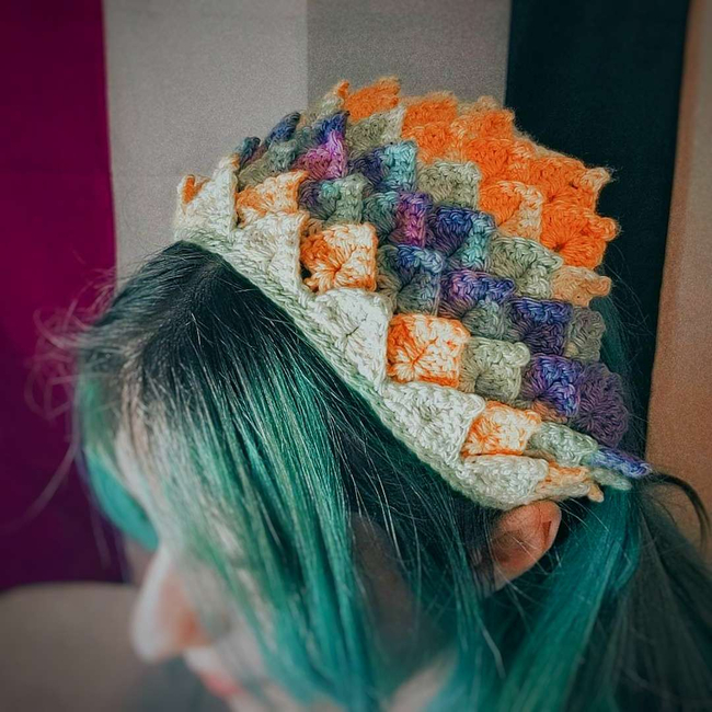 Chimera Crochet designed the Dragon Scale Bandana Pattern pattern. Find more of their patterns on their Ribblr shop page.