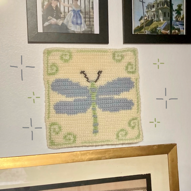 dragonfly tapestry! pattern includes graph and written instructions. can be used as a coaster, wall hanging, pillowcase...