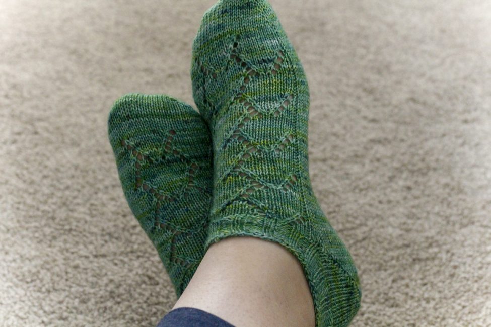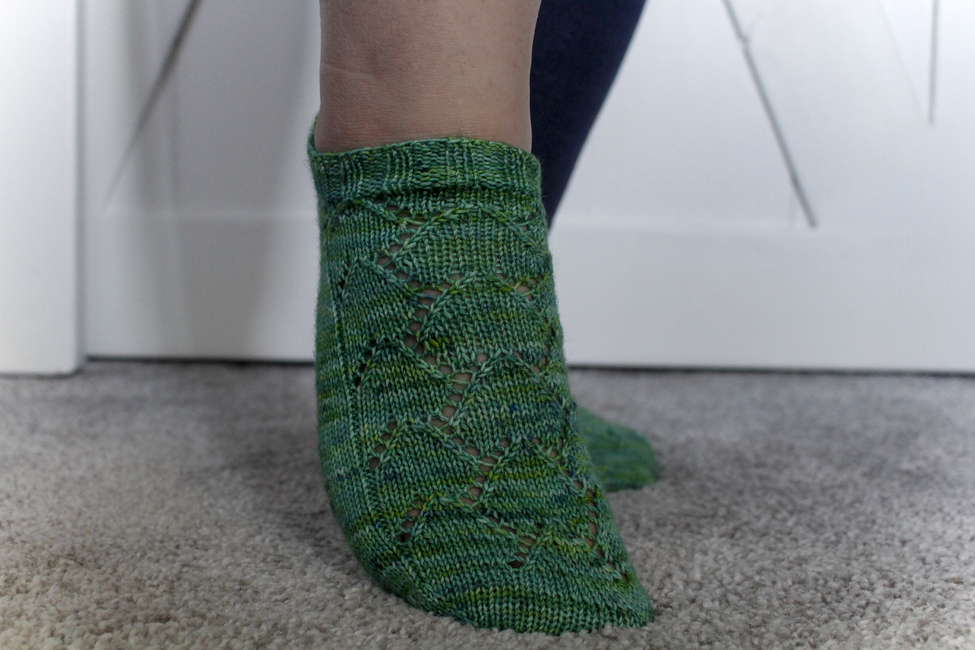 The pattern is written for the magic loop method for knitting socks; however, the design could be worked on double-pointed needles or mini-circulars instead should you prefer.