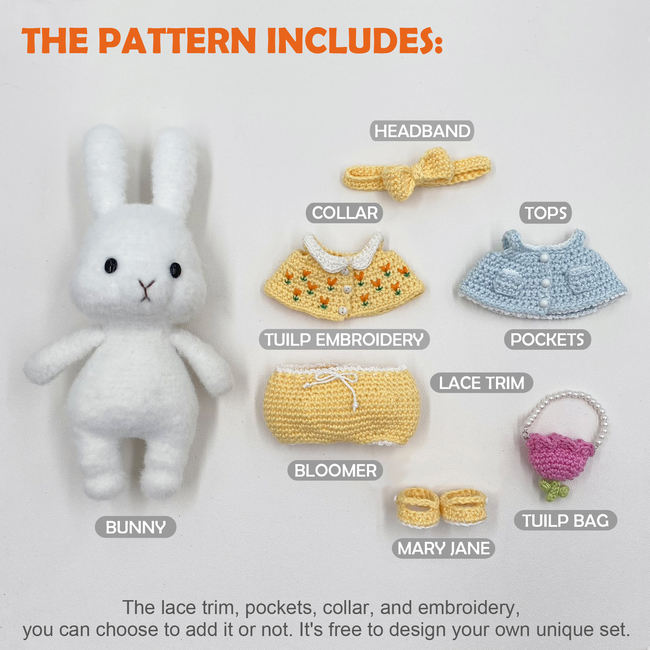 *This page is for BUNNY BODY and TULIP OUTFIT SET pattern download only! If you want to download the OVERALL SET pattern or all 3 patterns in 1, please check out my main page.