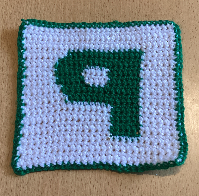 The grid attached can be followed without the written pattern; just count each square as a stitch and add the green border around at the end.