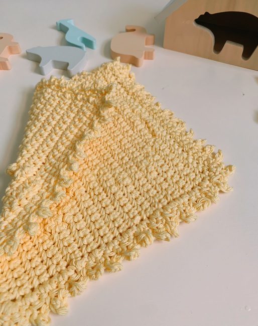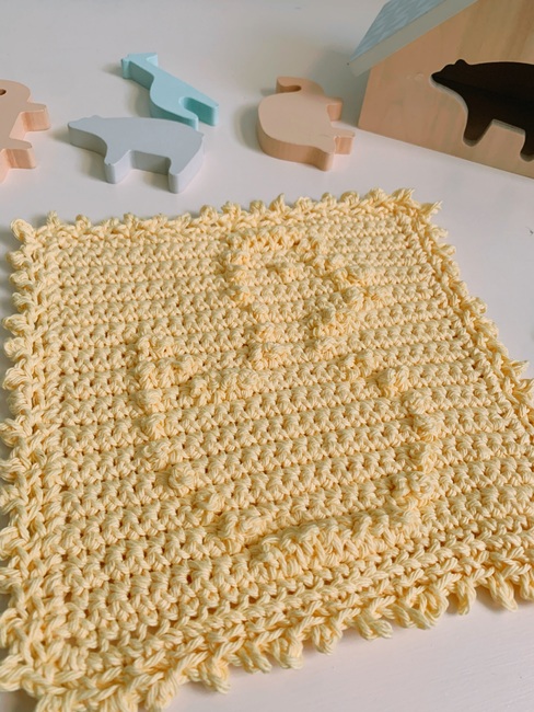 A fresh and fun washcloth that was designed with babies in mind that would be great to be given as a gift for a new baby, baby shower, or birthday present! So quick and easy to make you could even make several and keep for yourself!