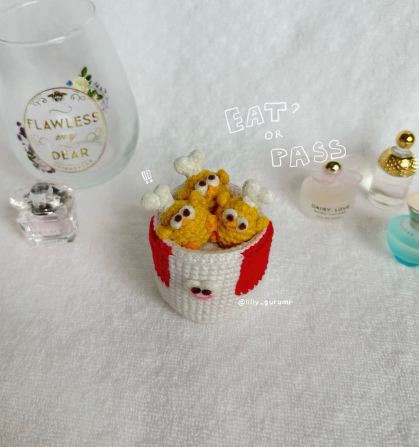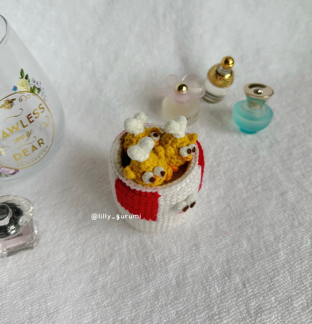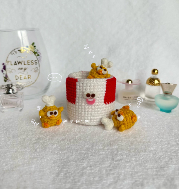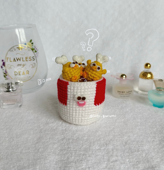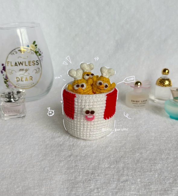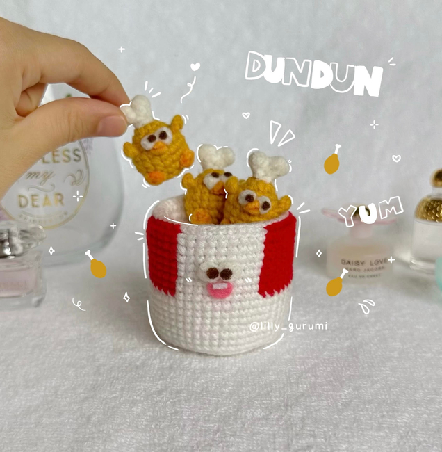 If you're craving for some hot and crispy fried chicken, then you're in the right place! This pattern provides instructions and photos to guide you to make your very own bucket with Dundun chicken legs! Rest assured, as you don't have to run to KFC or your local fried chicken place ever again with this bucket in hand!