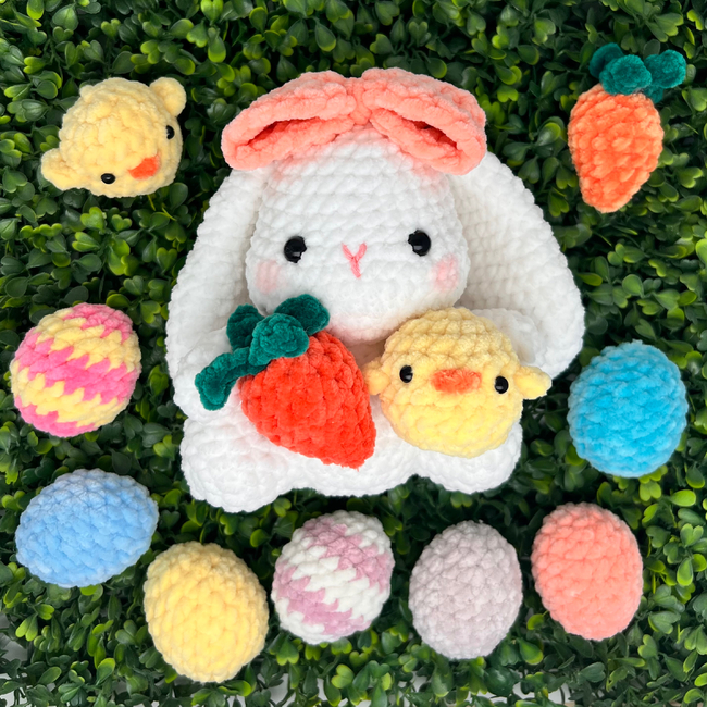 Add a festive touch to your crochet projects with this cute Easter Bunny and Chick amigurumi pattern set! Perfect for beginners and intermediate crocheters, this pattern is clear, beginner-friendly, and packed with step-by-step photos to guide you through every stitch.