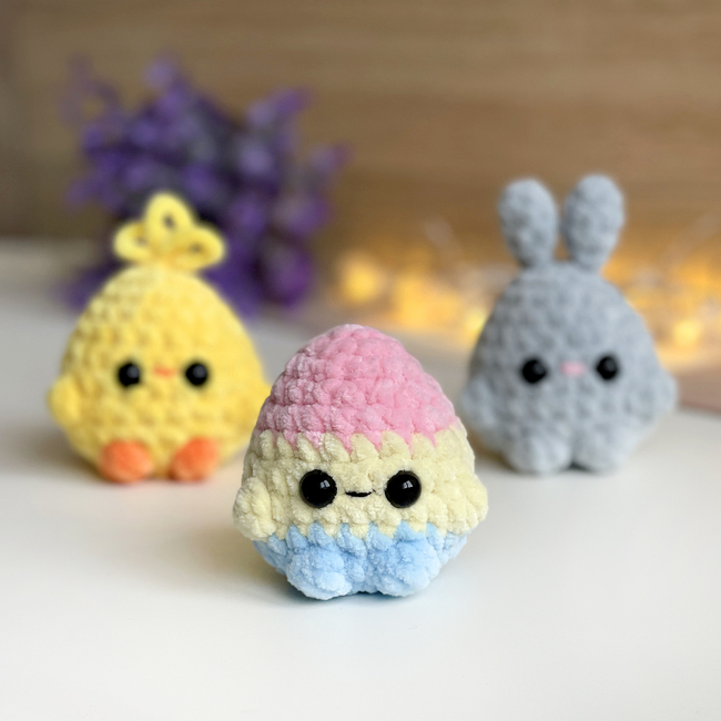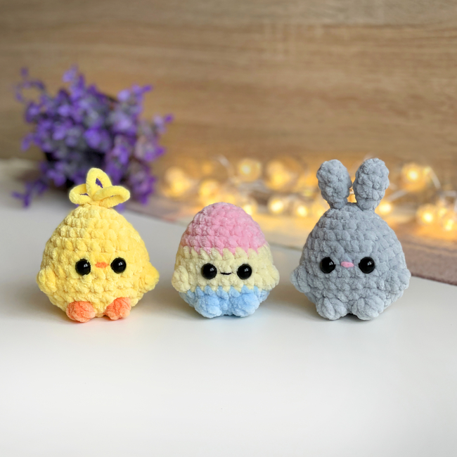 Create your own adorable Easter plushies with this fun and easy-to-follow crochet pattern set! This bundle includes three amigurumi designs: a cute bunny, a fluffy chick, and a decorative Easter egg. Perfect for beginners and experienced crocheters alike, these patterns are quick, simple, and super fun to make!