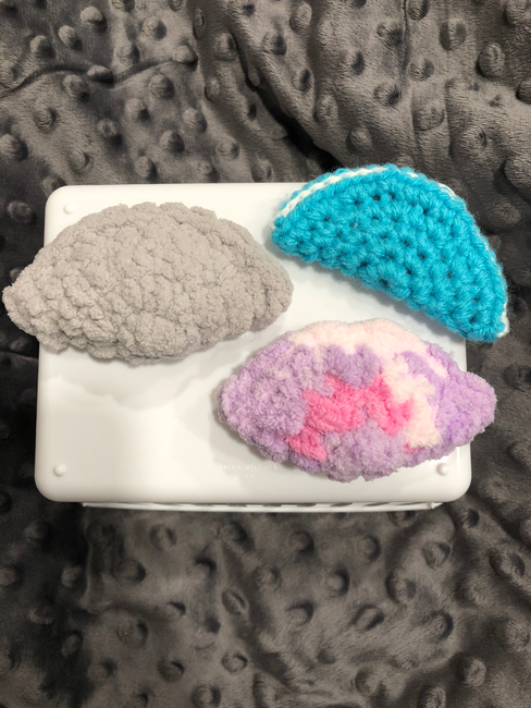 This pattern can be done with any yarn and any size hair clip just add rows as needed (3 sc, inc - 4 sc, inc etc) make sure to wrap the hair clip so it doesn't open in the toy. Enjoy!