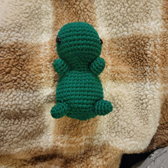 This pattern uses basic crochet stitches making it great for beginner amigurumi artist. You can use any yarn and hook you want. I used red heart super saver in paddy green, 6mm safety eyes, polyfill, and stuffing. It turned out to be about 7 inches tall and 4 inches wide.