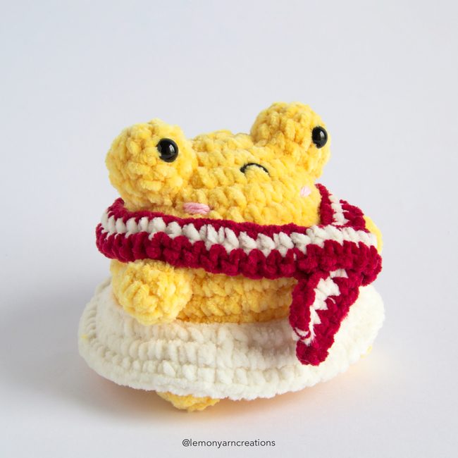 Eggs and bacon are one of the best breakfast combos, but have you ever tried it with a side of frog?! Eggo Froggo is an adorable egg-like frog, who stays cozy thanks to a bacon scarf. This is a quick pattern, perfect for a relaxing time.