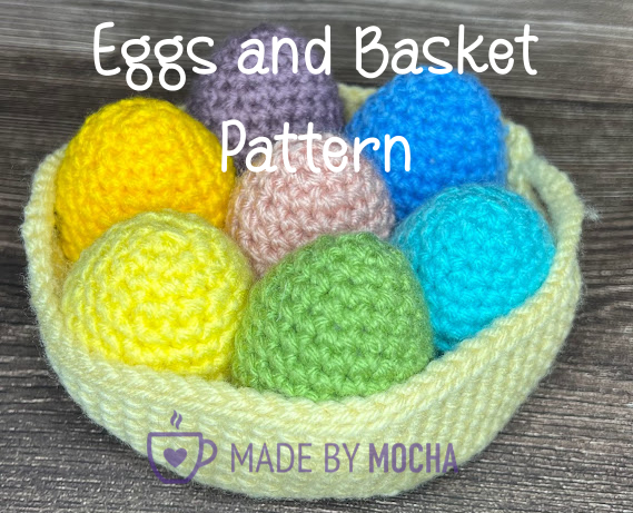 This simple pattern makes life-size eggs in a cozy basket. Perfect for Easter or play.